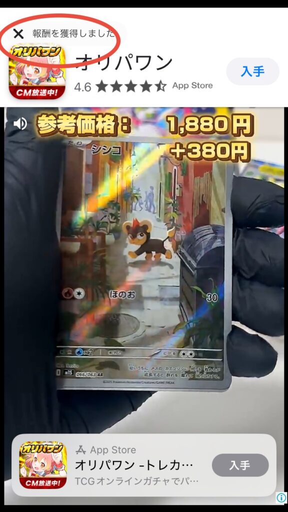報酬をかくとくしましたをタップ↑
