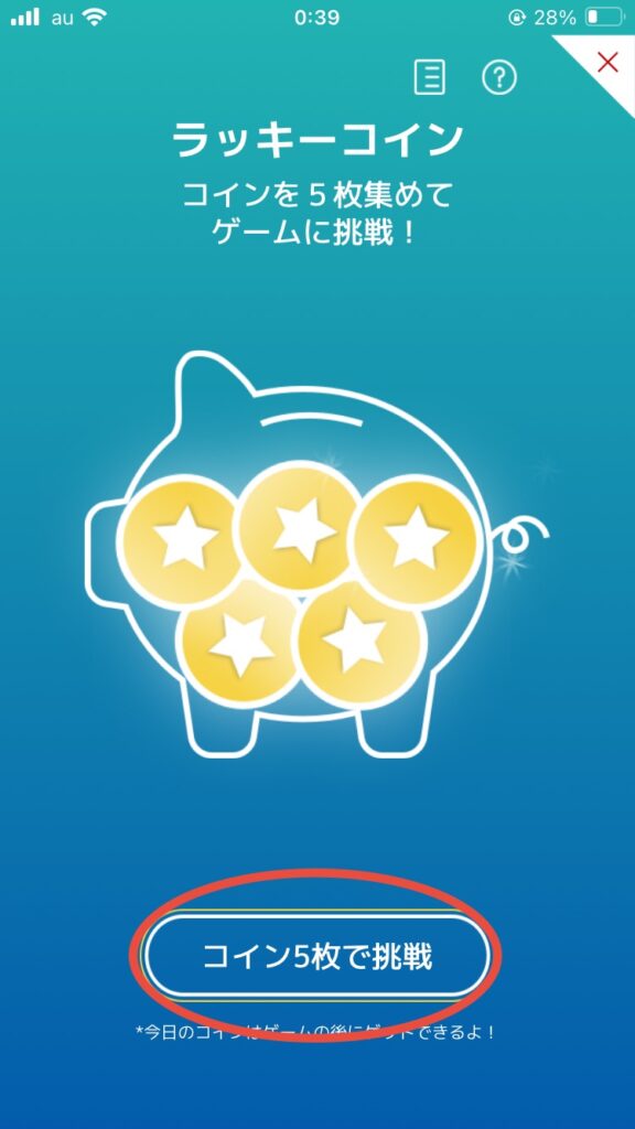 ラッキーコイン5枚集めてゲームに挑戦一連の流れはわかりましたか