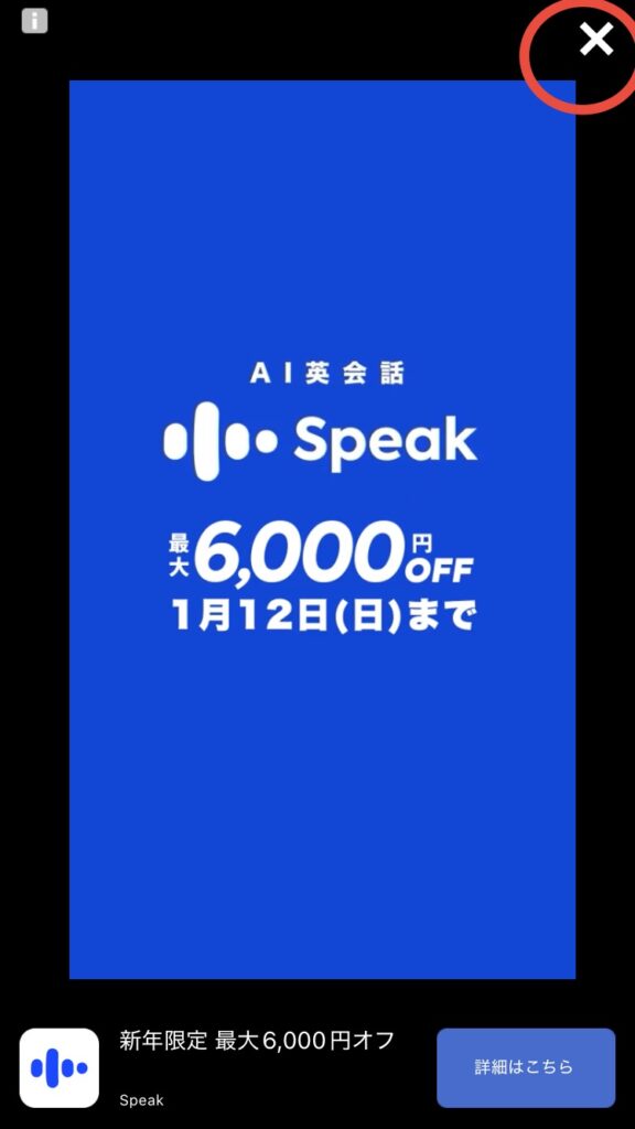 ×をタップ↑