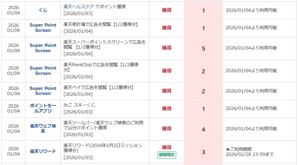 🔢 獲得ポイント内訳(2026/01/04反映分)