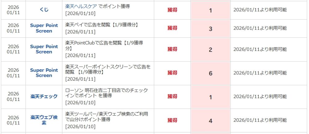 🔢 獲得ポイント内訳(2026/01/11反映分)