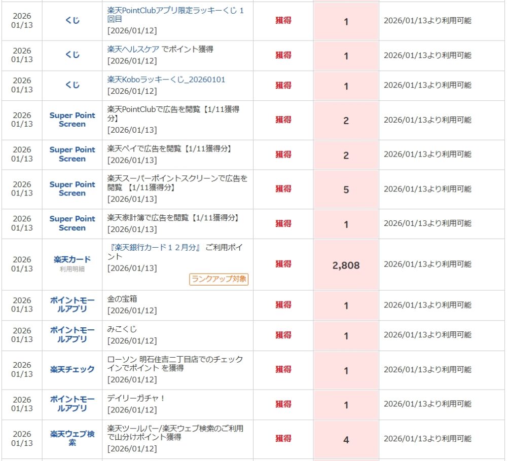 🔢 獲得ポイント内訳(2026/01/13反映分)