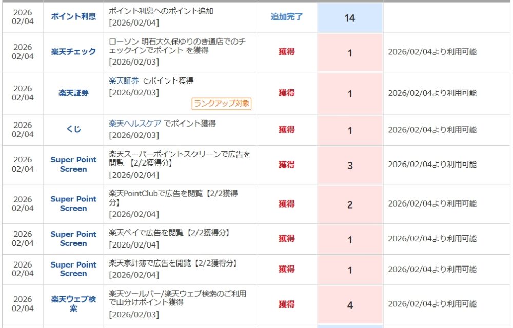🔢 獲得ポイント内訳(2026/02/04反映分)
