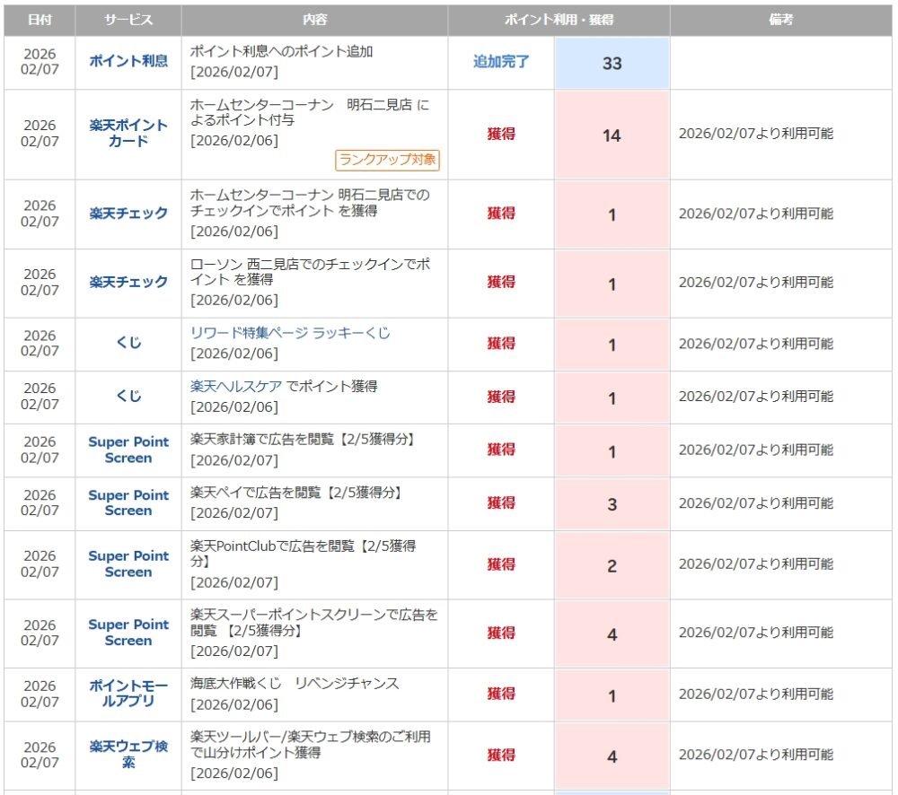 🔢 獲得ポイント内訳(2026/02/07反映分)