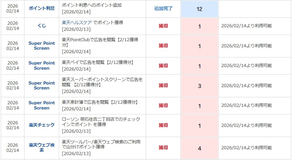 🔢 獲得ポイント内訳(2026/02/14反映分)