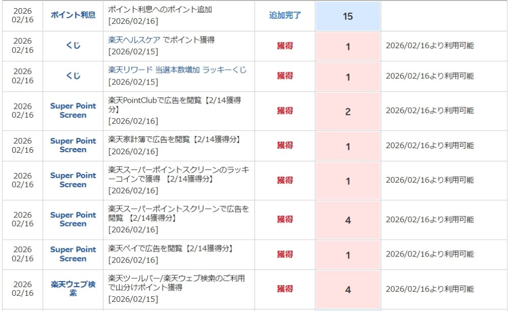 🔢 獲得ポイント内訳(2026/02/16反映分)