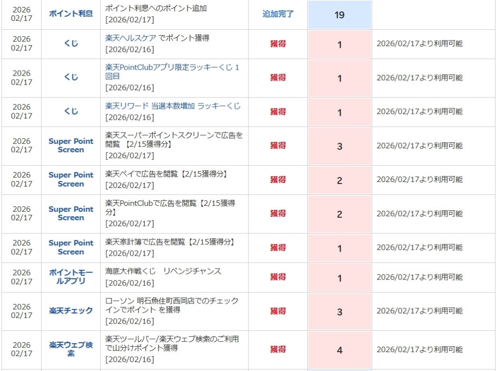 🔢 獲得ポイント内訳(2026/02/17反映分)