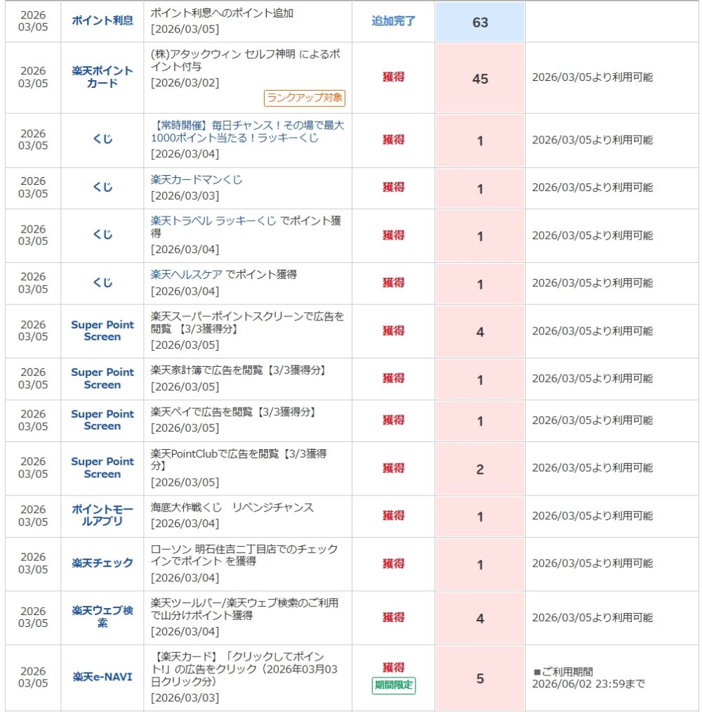 🔢 獲得ポイント内訳(2026/03/05反映分)