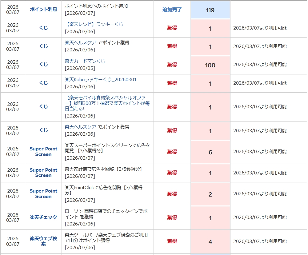 🔢 獲得ポイント内訳(2026/03/07反映分)