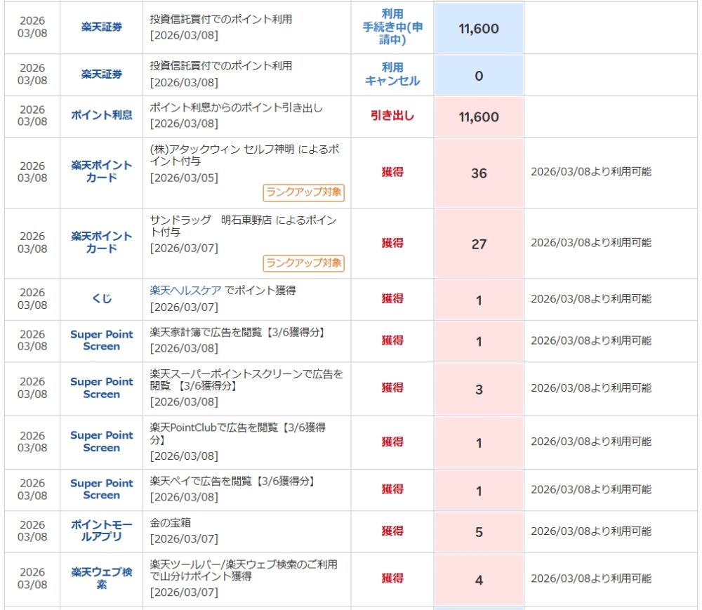 🔢 獲得ポイント内訳(2026/03/08反映分)