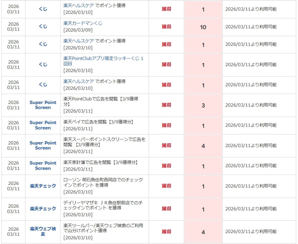 🔢 獲得ポイント内訳(2026/03/11反映分)