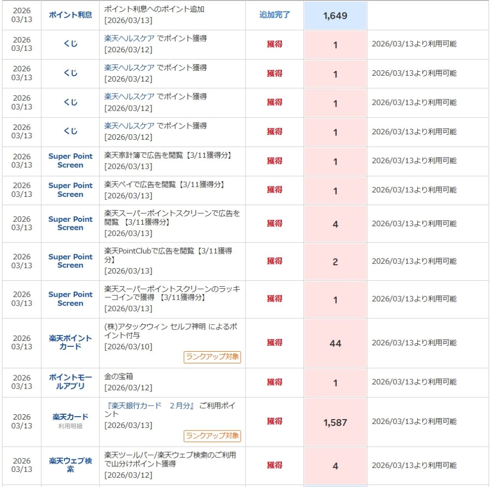 🔢 獲得ポイント内訳(2026/03/13反映分)