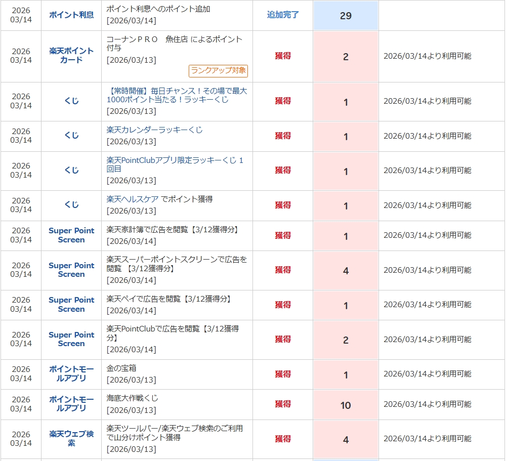 🔢 獲得ポイント内訳(2026/03/14反映分)
