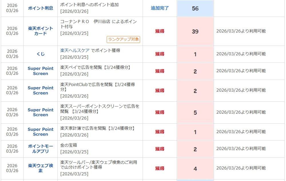 🔢 獲得ポイント内訳(2026/03/26反映分)