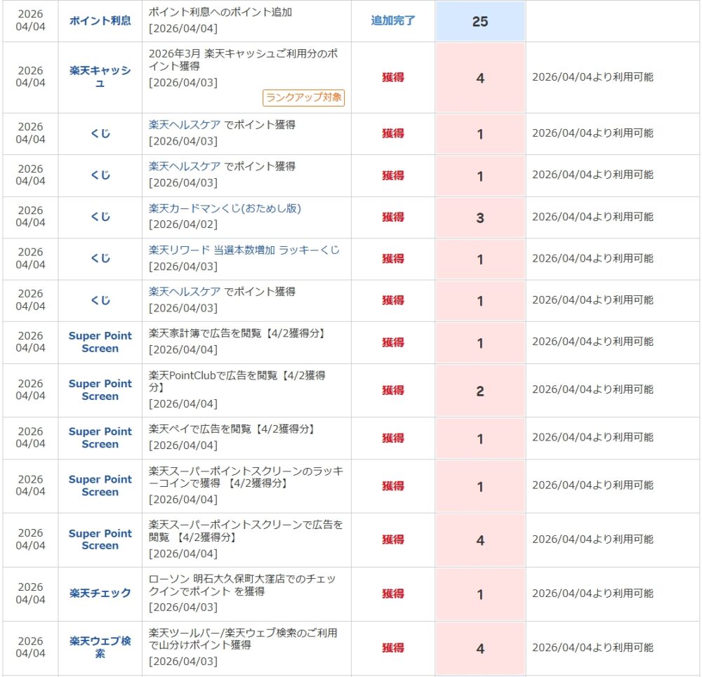 🔢 獲得ポイント内訳(2026/04/04反映分)