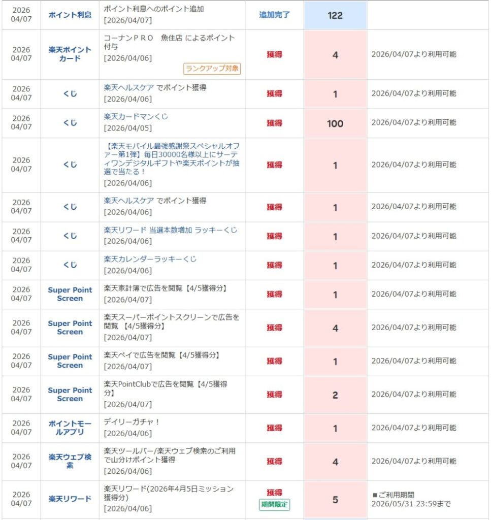 🔢 獲得ポイント内訳(2026/04/07反映分)