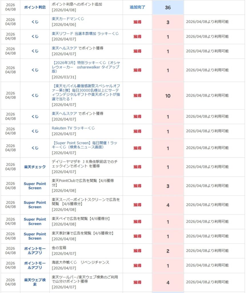 🔢 獲得ポイント内訳(2026/04/08反映分)