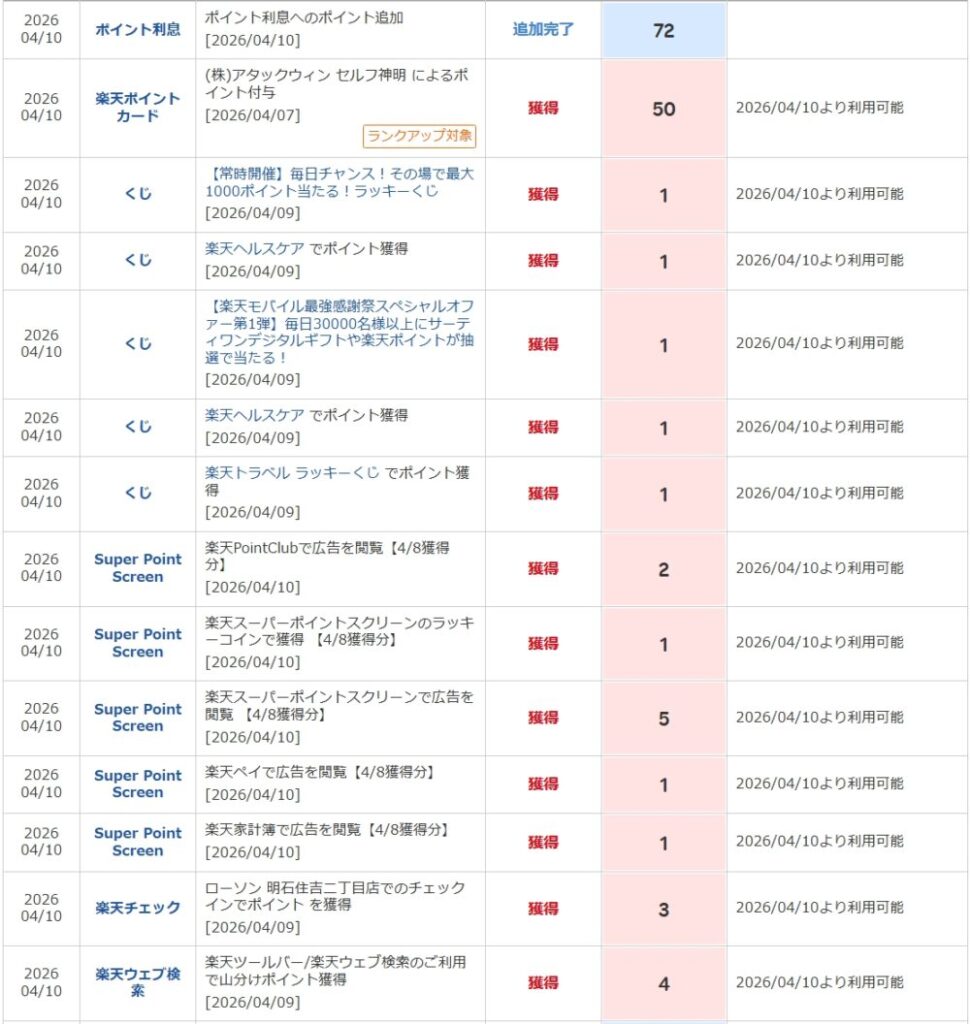 🔢 獲得ポイント内訳(2026/04/10反映分)
