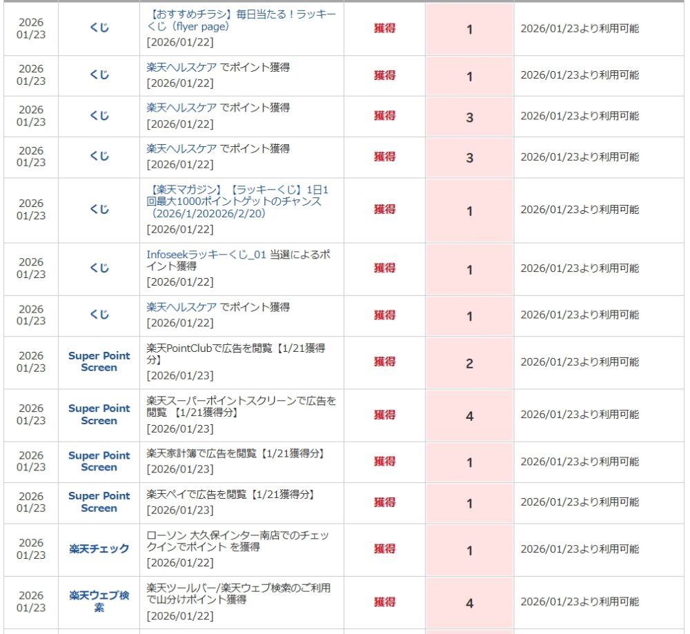 🔢 獲得ポイント内訳(2026/01/23反映分)